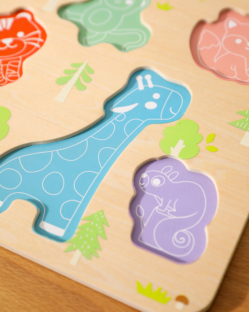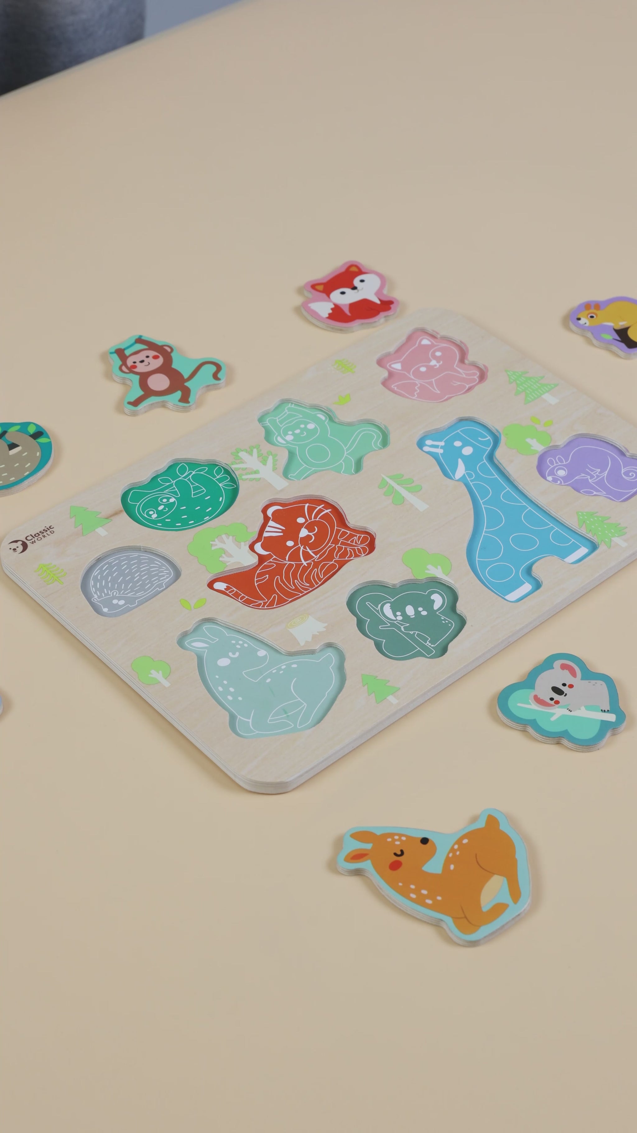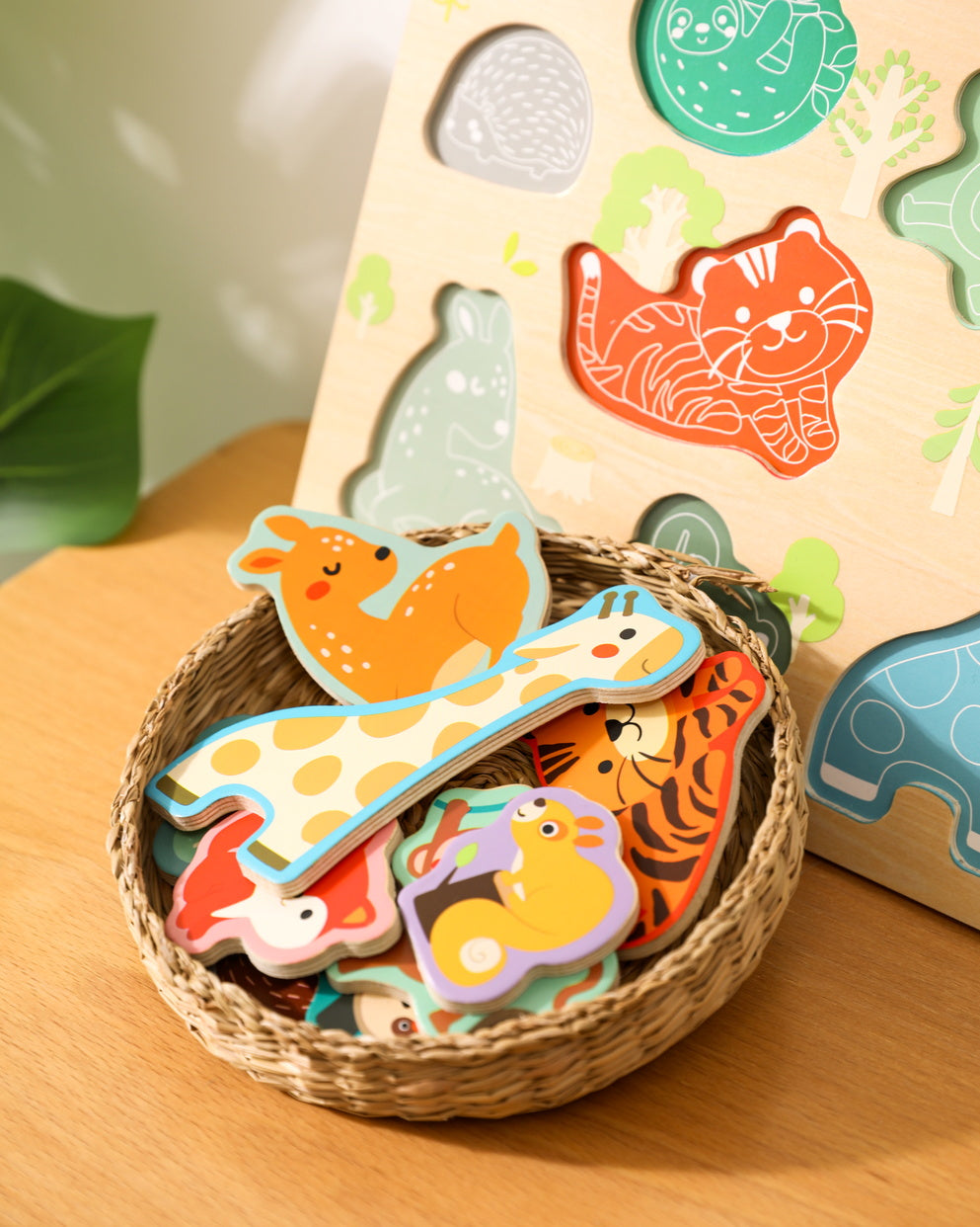 Ez a vidám erdei állatokkal díszített kirakó játékos módon vezeti be a gyerekeket az állatok világába.