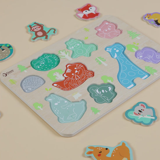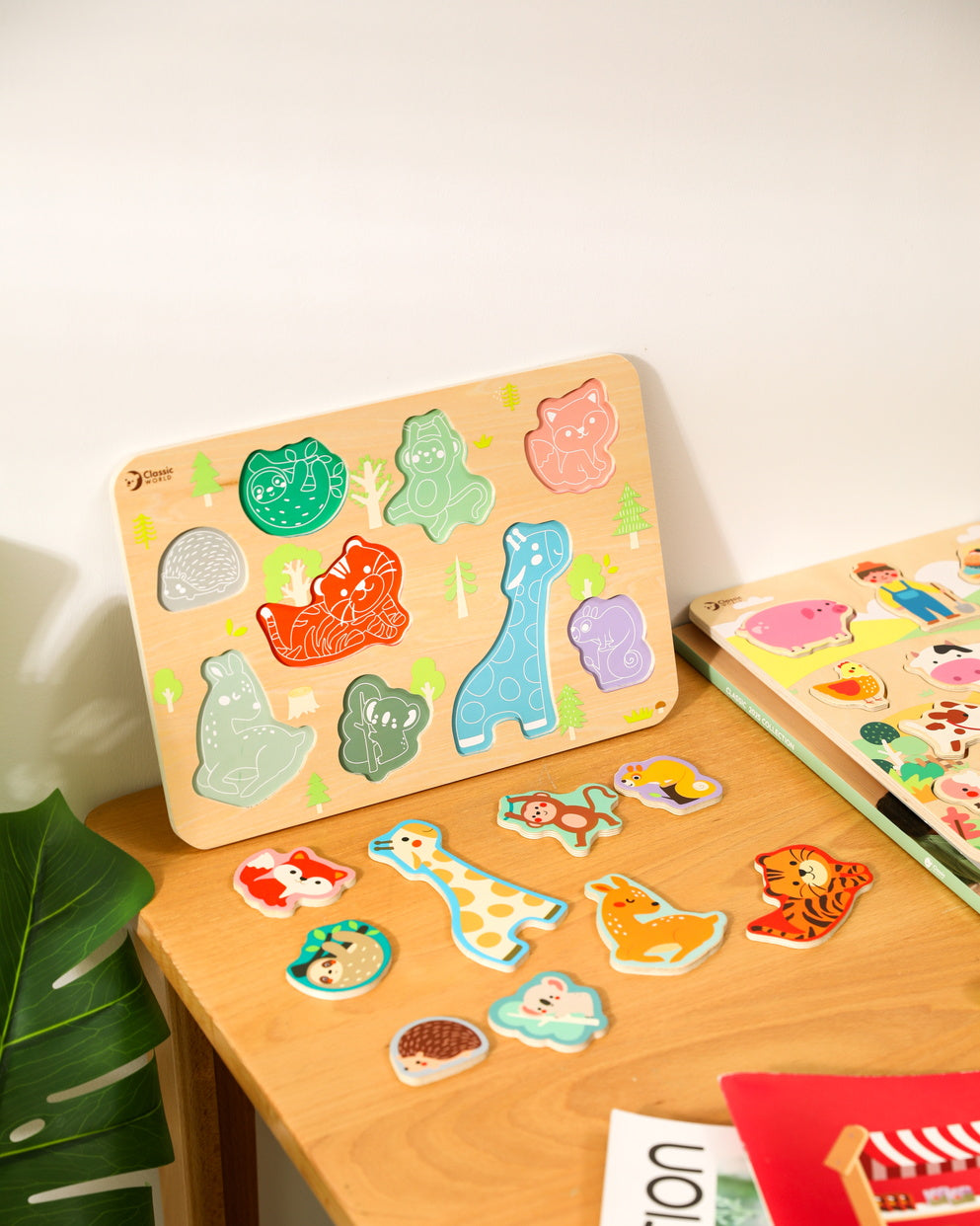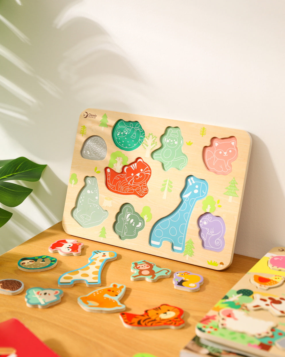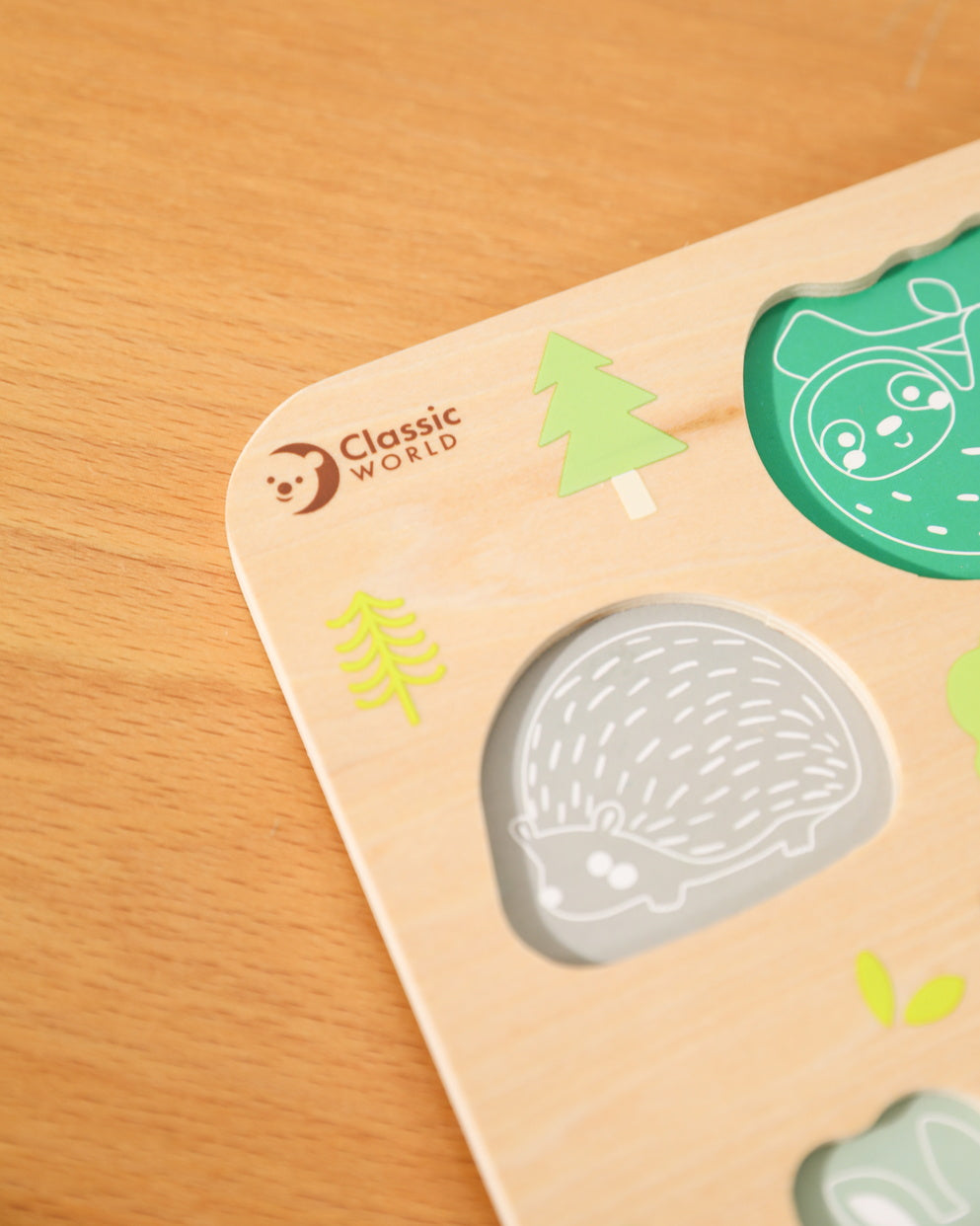 Ez a vidám erdei állatokkal díszített kirakó játékos módon vezeti be a gyerekeket az állatok világába.