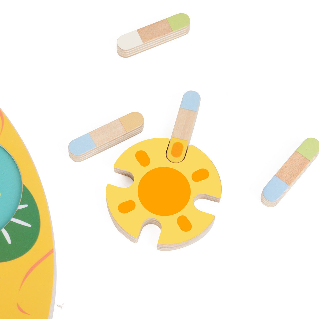 Kinyitható, összepárosítható elemeivel a játék fejleszti a logikus gondolkodást, a kézügyességet és a finommotorikát, miközben játékosan ösztönzi a kreativitást és a felfedezőkedvet.