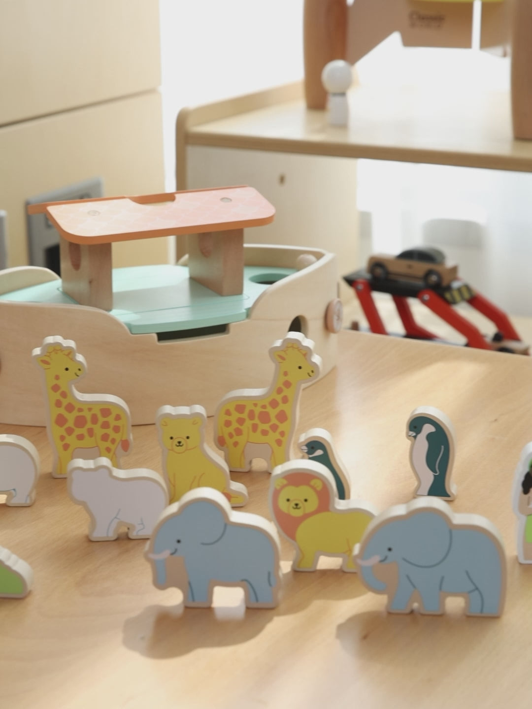 Az arányaiban kidolgozott jármű, valamint az állatpárok segítségével a kicsik fejleszthetik a finommotorikájukat, a szem–kéz koordinációjukat, és játék közben bátorítani őket az együttműködésre és a történetmesélésre.