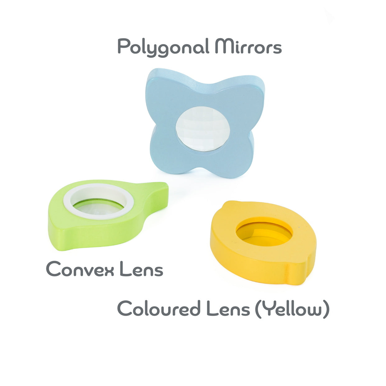 Ez a készlet kaleidoszkópot, rácsdobozt, forgatható korongot és prizmát tartalmaz, amelyek játékos és izgalmas felfedezést nyújtanak. A gyerekek megtapasztalhatják a fény és a színek világát, miközben fejlődik a megfigyelőképességük, a kreativitásuk és a kézügyességük.