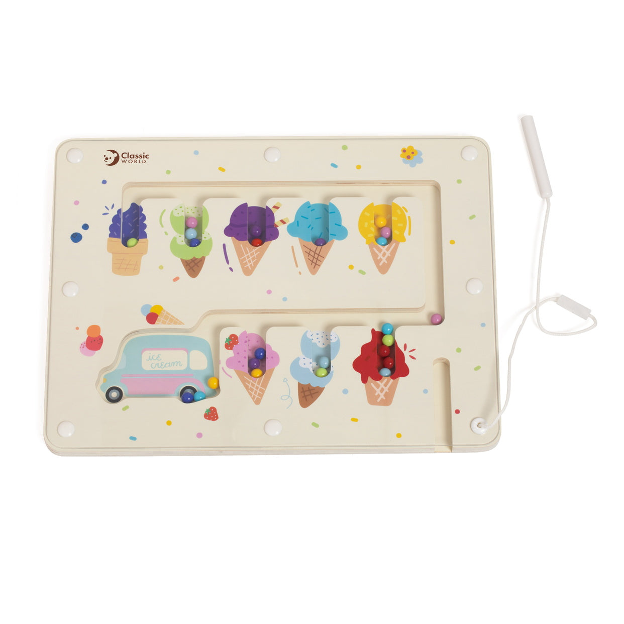 A kisgyermekek saját fagylaltműhelyt kapnak, ahol a különböző színű fagylaltgolyókat a megfelelő tölcsérekbe helyezhetik a mágneses toll segítségével.