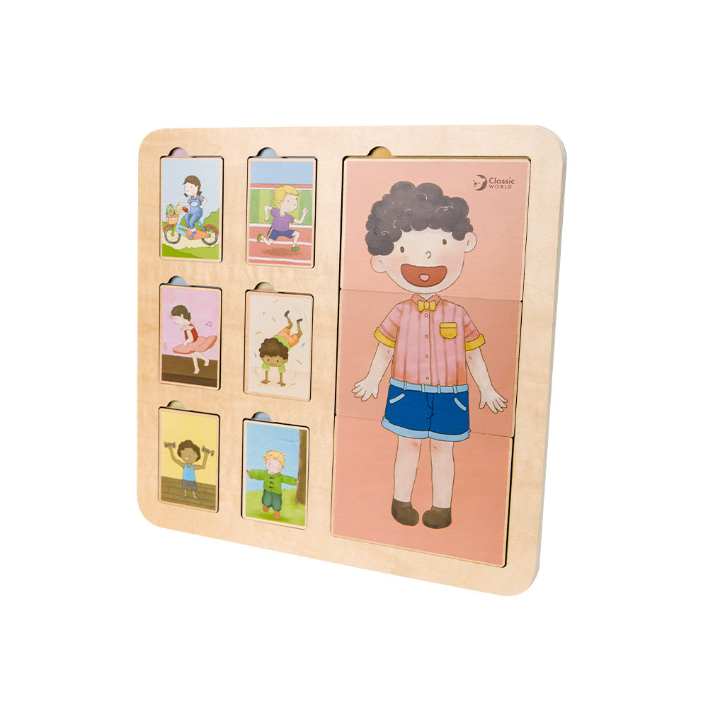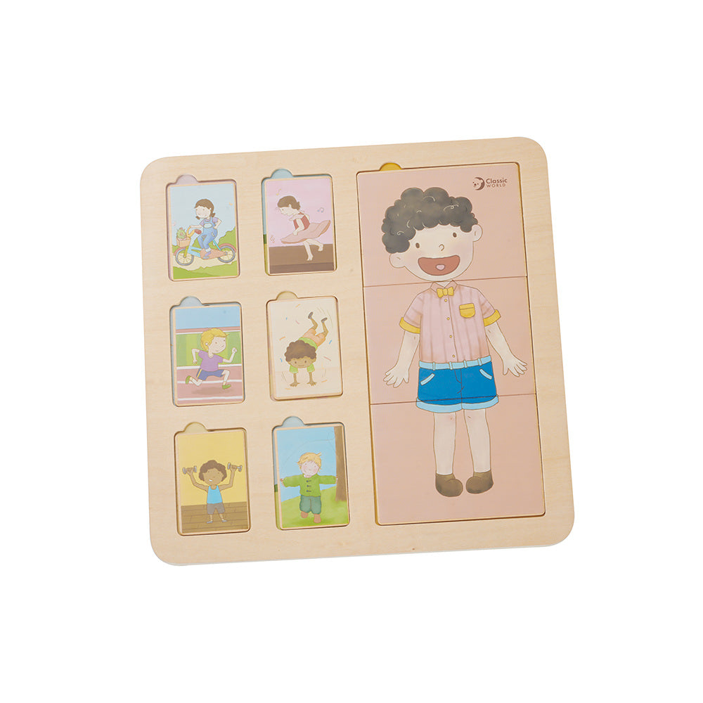 Ez a testfelismerő kirakó segít a gyerekeknek megismerni a test különböző részeit és azok elhelyezkedését.